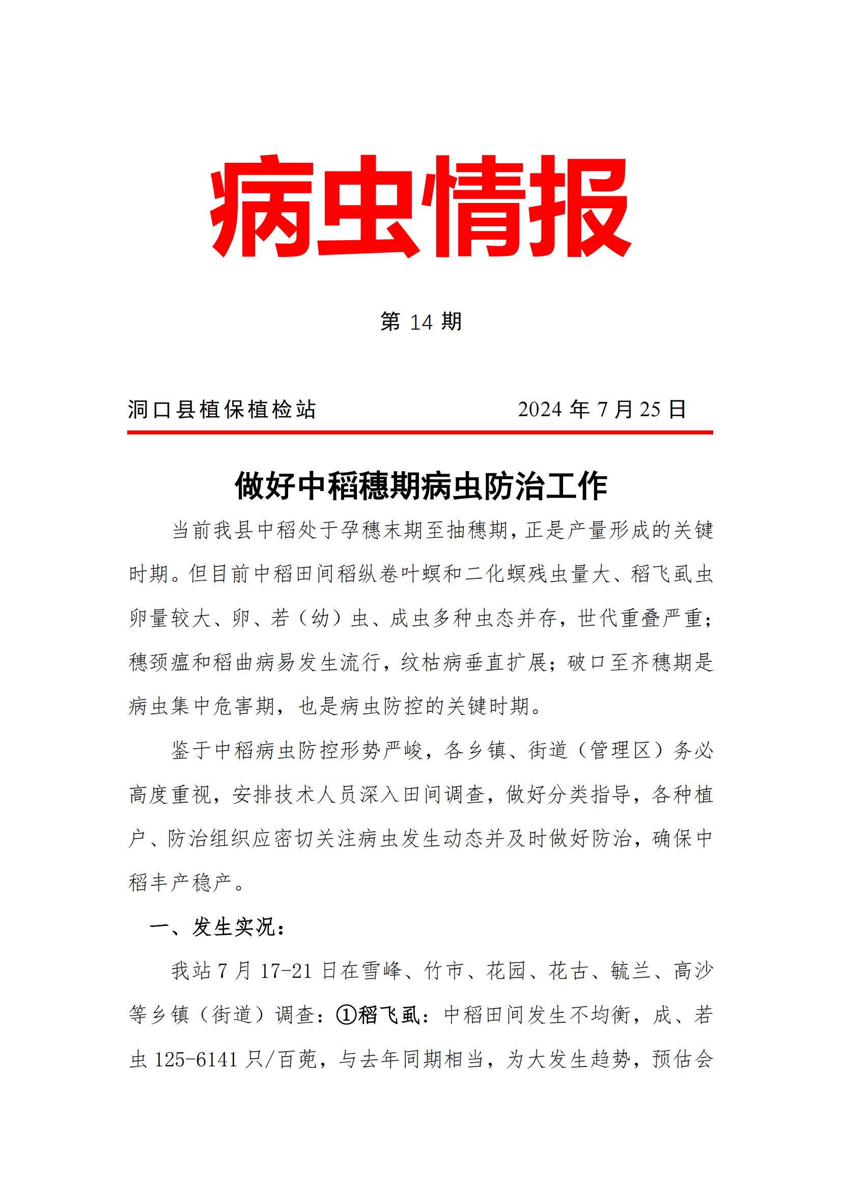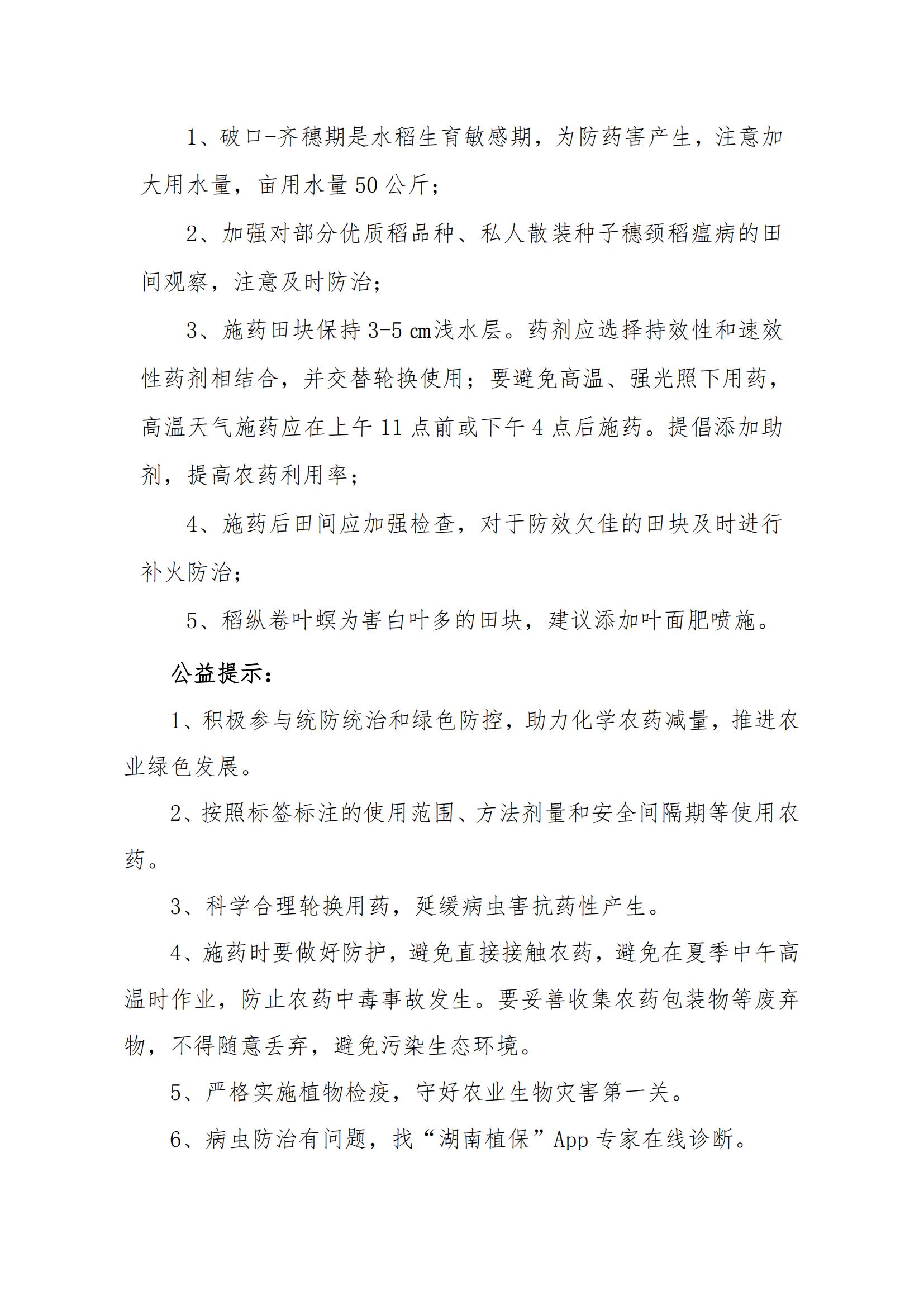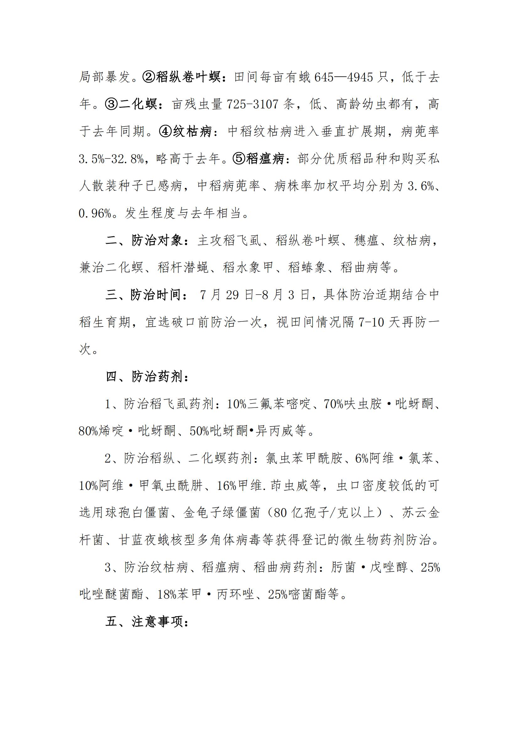 病虫情报《做好中稻穗期病虫防治工作》